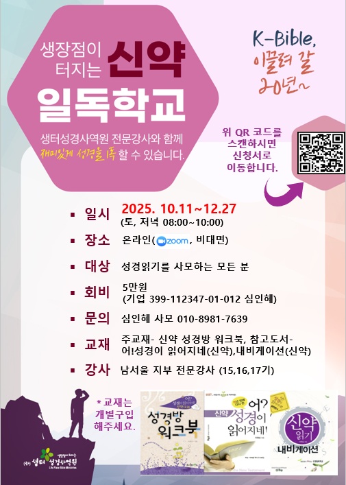 [남서울지부] 신약성경방 일반 2025.10.11(토)~12.27(토)_저녁8시-10시