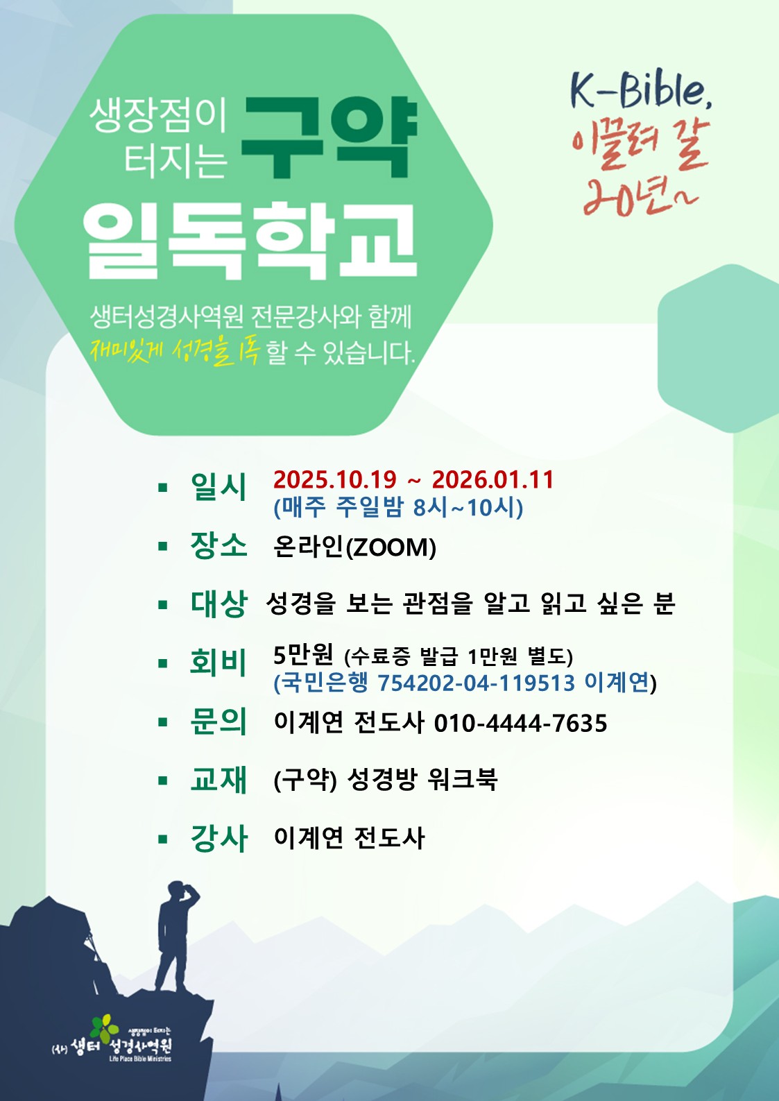 [용산지부] 구약성경방 2025.10.19 ~ 2026.01.11 (매주 주일밤 8시~10시)