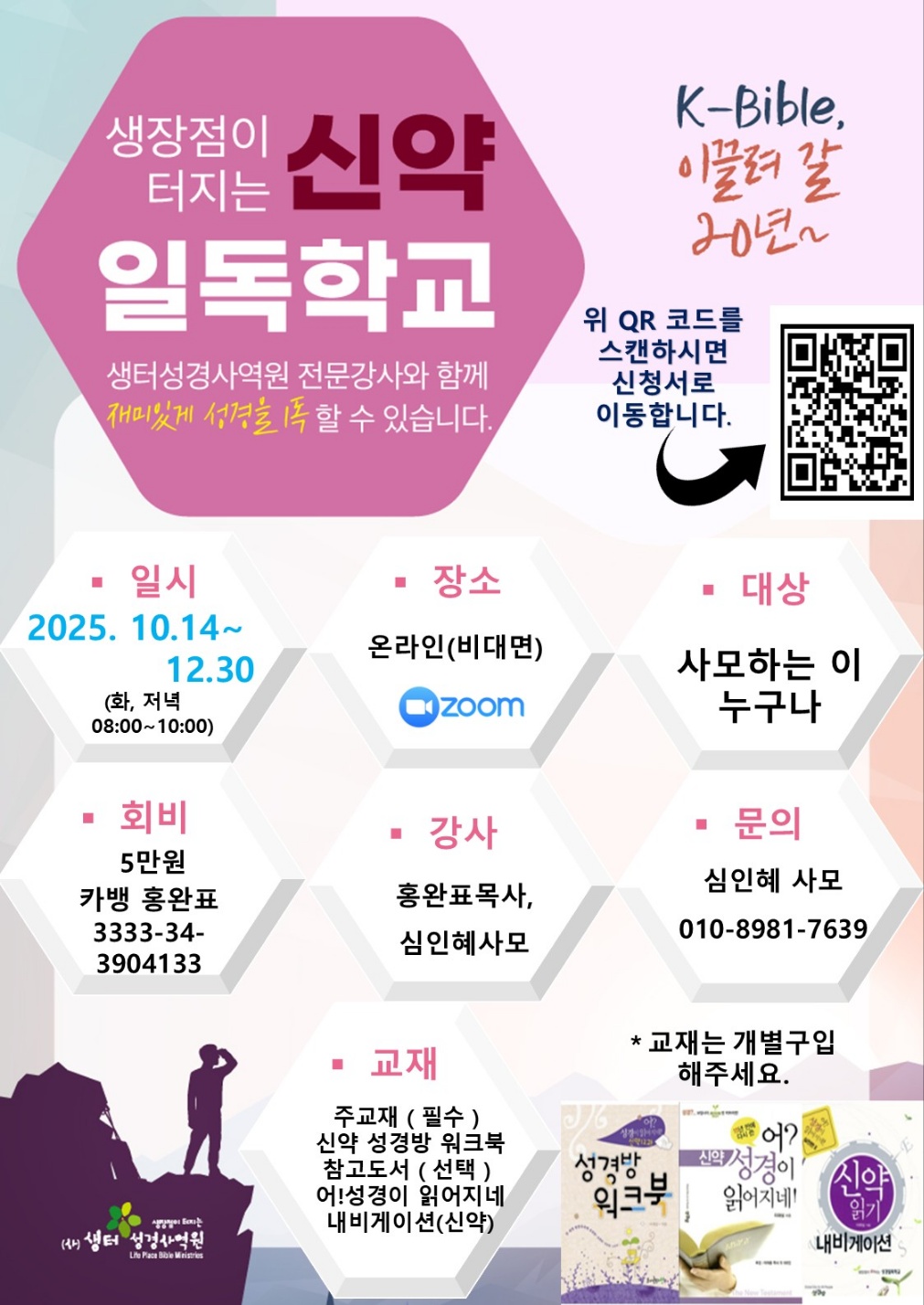 [남서울지부] 신약성경방 일반 2025.10.14~12.30_매주 화요일 저녁 8시-10시