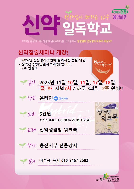 [용산지부] 신약집중세미나 11/10,11,17,18, 저녁7시-11시 50분 (월,화)