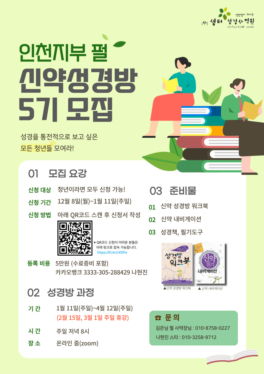 [인천지부] 펄 신약성경방 2026.01.11 ~ 04.12 / 매 주일 / 저녁8시
