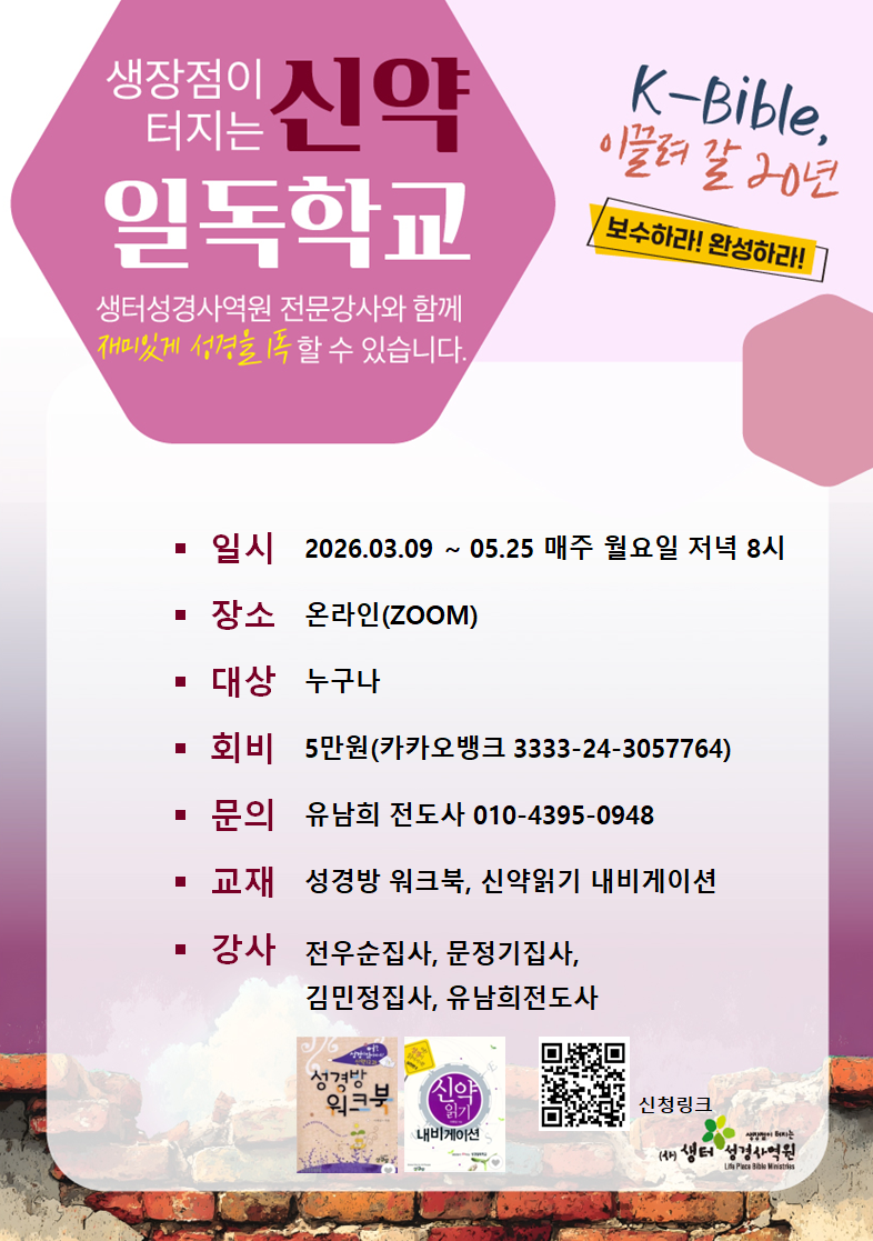 [동서울지부] 신약성경방 일반 26.3.9 ~ 5.25 매주 월요일 저녁 8시 ZOOM